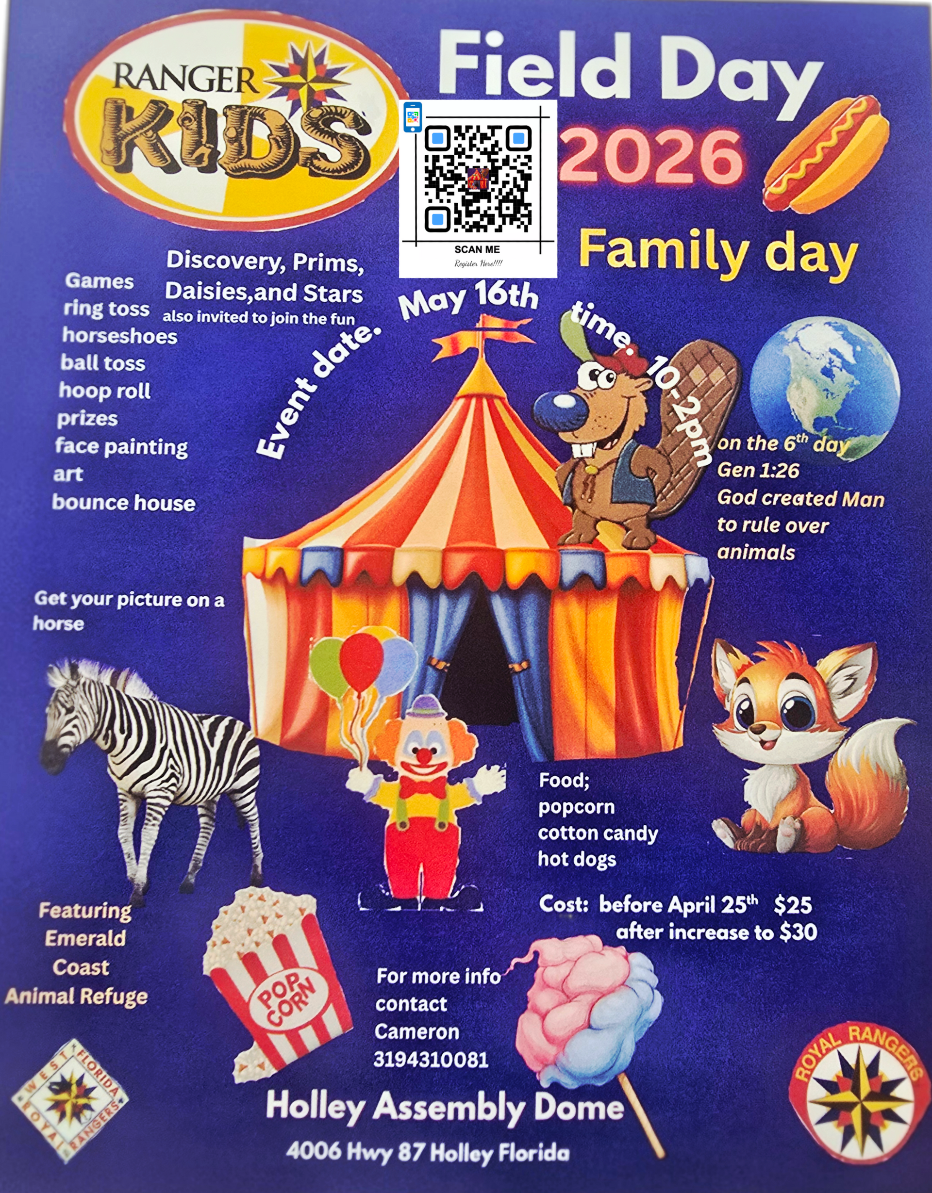 This is a carnival themed event. We have opend this up to Ranger Kids, Discovery Rangers, Girls Ministries K-5th please come be a part.