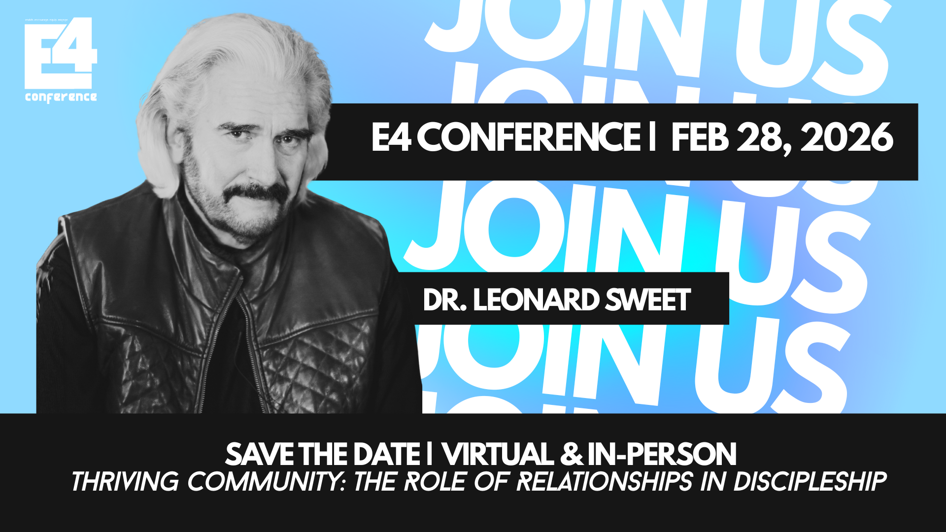 The 2026 E4 Conference takes place on February 28, 2026, and is designed for all church leaders—from pastors to volunteers. Featuring Leonard Sweet, this conference will focus on the vital role of relationship in discipleship, reminding us that faith is formed through connection. Join us in person at Milton First Assembly or virtually via Zoom for a day of encouragement and equipping.