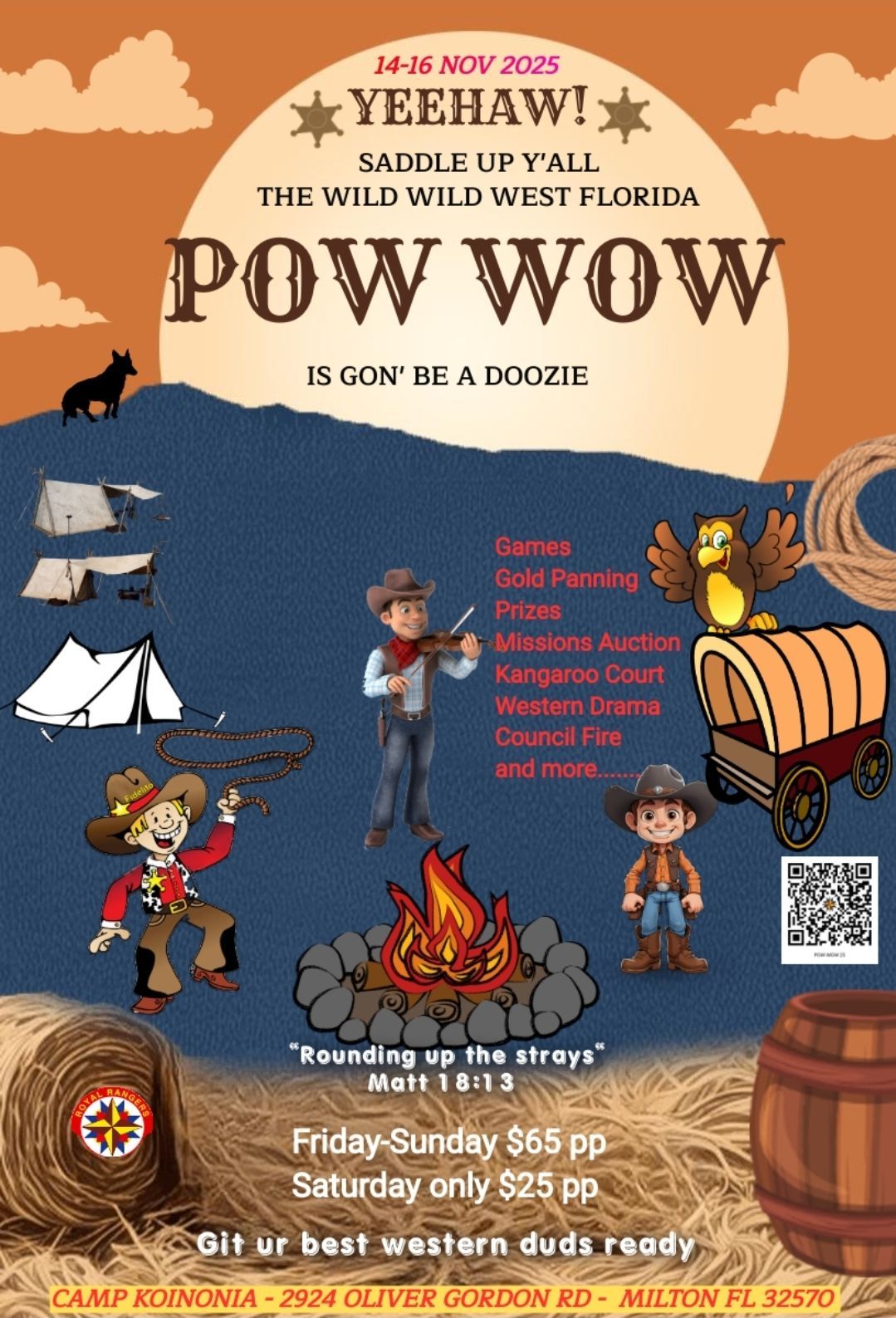 Meals and patch included. Going to be a western theme, games, activities, gold panning and more. Come help us "Round up the strays "